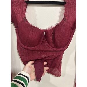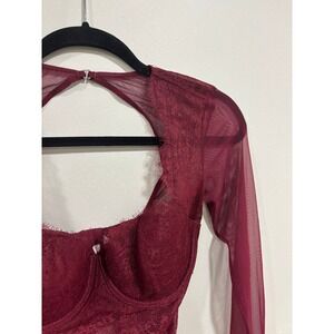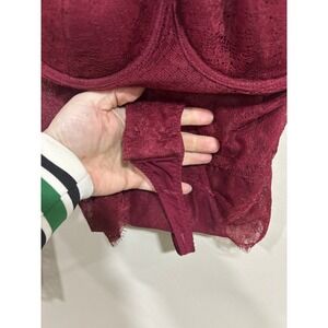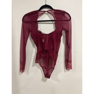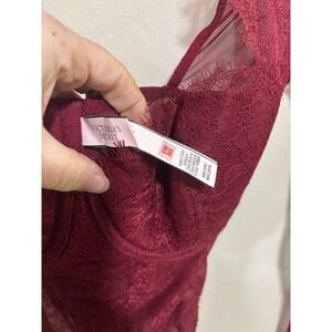 Victoria's Secret 32C Burgundy Lace Bodysuit Sheer Mesh Lingerie Dark Feminine