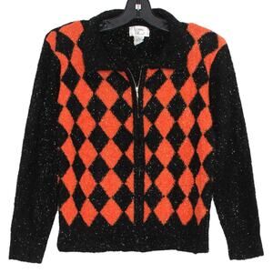 Cardigan Y2K Sparkle Argyle Preppy Academia Indie Sleaze Zip Orange Black Medium