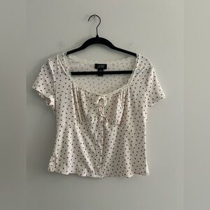 Just Polly NY Cherry Print Ribbed Lace Trim Tie Front Top XL