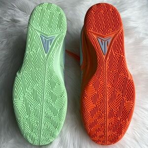 Nike Ja 1 “Mismatched” brings instant energy with one Bright Mandarin shoe and one Vapor Green shoe—made to get noticed from warmups to the final buzzer. Lightweight, breathable mesh keeps you cool, while cushioned foam and grippy rubber traction help you stay quick on cuts and drives. Easy lace-up fit in men’s US 18 for big-foot hoopers. Great for basketball, gym sessions, and casual streetwear. Condition: New without tags. No Box.