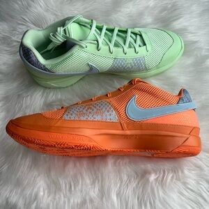 Keywords: Nike Ja 1, Ja Morant, mismatched, Bright Mandarin, Vapor Green, FQ4796-800, men’s size 18, basketball shoes, low top sneaker, breathable mesh, cushioned foam, rubber outsole, traction, colorblock, athletic footwear