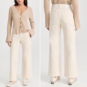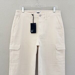 Paige Carly Wide Leg Cargo Pant 31 Cream Neutral Cotton Twill Utility Casual NWT