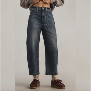 Crafted from a premium cotton-blend denim, these jeans offer structure with a touch of stretch for comfort and ease of movement. The wide, slightly tapered leg creates a flattering drape while oversized patch pockets add utility-inspired detail. Perfect for elevated everyday styling.
