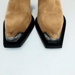 Mango Suede Leather, Distressed, Western Ankle Boots, NWT, Size 38| US 7.5, brown, with silver tips, zip on inside of boot, new with tags, no box, insole toe to heel 9.5", widest part of toe 3 1/4", low heel 1.5", photos show true condition of boots