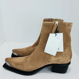 Mango Suede Leather, Distressed, Western Ankle Boots, NWT, Size 38| US 7.5