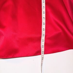 Faviana New York Vintage Red Strapless Formal Dress. Taffeta satin fabric, sweetheart neckline, slight mermaid style bottom with flare and ruffle hem and mesh tulle underlayer for volume. Long full length, back zip closure. Perfect ballgown to stand out on a formal occasion, homecoming, or to wear as a Jessica Rabbit, Cruella De Vil, or Queen of Hearts Halloween costume. Women's size 3 / 4, measurements pictured. Very good to excellent vintage condition - one small indent on fabric and one very small pin tip sized light mark shown in final 2 photos.
