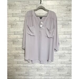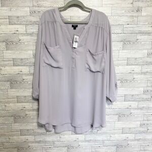 NEW with Tags! Torrid Harper Georgette Pullover Blouse in a lovely lavender hue. This stylish top features a V-neckline with a subtle Henley placket, two functional chest pockets, and roll-tab sleeves.