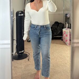 Aritiza Denim Forum Arlo High Rise straight 28L jeans, 28 inch waist & inseam is 24”! Super cute & in great condition.. RTP is $110💙very flattering on!