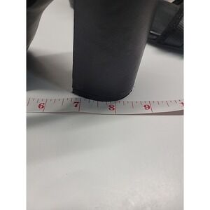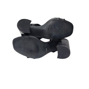 The N by Nicole Miller Blankslate open-toe black block heel sandals in size 7.5 are stylish and versatile shoes perfect for various occasions such as parties, formal events, and business meetings. These chic sandals feature a solid black color with an open toe design and a hook & loop closure, making them easy to slip on and off. The ultra-high block heel adds a touch of elegance, while the faux leather material and ankle strap provide durability and comfort. These pumps are a great addition to any woman's shoe collection, especially for those who appreciate a trendy and sophisticated look.