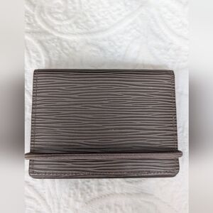 Rare Authentic Louis Vuitton LV Epi Leather Porte-Monnaie Elastique Unisex Tri Fold Compact Wallet in Pepper Grey