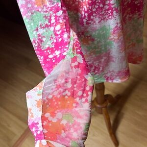 Soft lightweight gold 1/4 pullover shirt with the sheer mesh insides of the arms. Super soft. Inside logo is slightly faded. See picture.