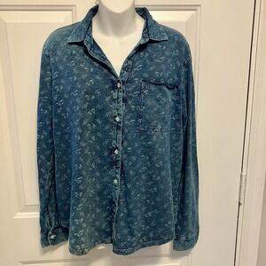 Sundance Sz Medium Blue Denim Shirt Women's Western Style Equestrian Print Boho
