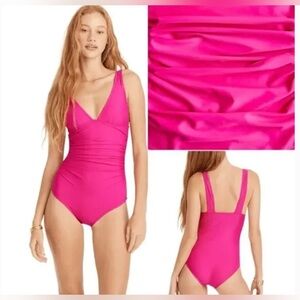 J.Crew Plus Size Ruched V-neck One-piece swimsuit NWT Radiant Fuchsia Pink BC116