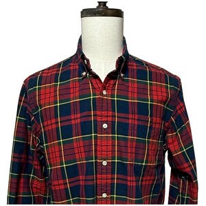 J Jill Shirt Dress 12 Knee Length Red Black White Button Up Roll Tab Career