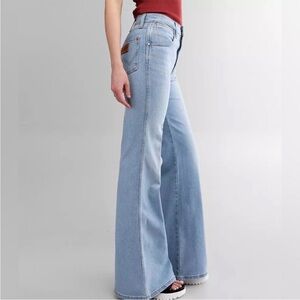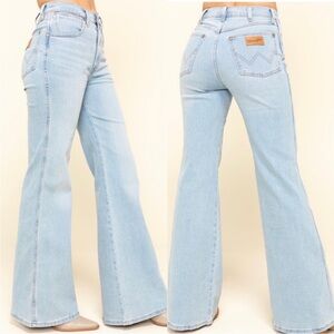Wrangler Fly High Flare Jeans Light Wash Wide Leg Western Stretch Size 28