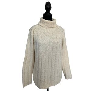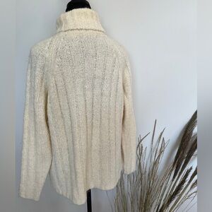 Stay warm and stylish with this cozy cream turtleneck sweater. Perfect for any occasion. Size medium EUC