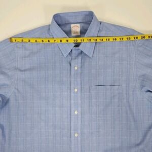 Brooks Brothers 346 Dress Shirt Mens 17 - 4/5 Cotton Blue Glen Check Non Iron