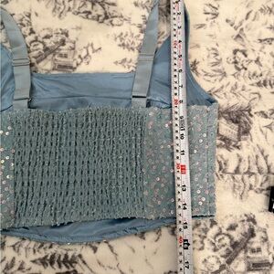 Elevate your style with this sparkling blue crop top. Perfect for adding a touch of glamour to any outfit.