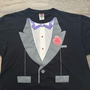 Vintage fruit loom tuxedo t shirt fits men’s L black purple red white