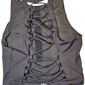 EUC, Alo Yoga cropped tank top sports bra in black. No call outs, just minor wash wear. size medium