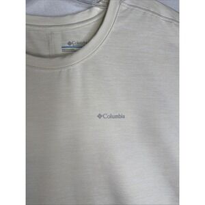 Columbia Women's Cropped T-Shirt in cream – size Medium – preowned in excellent condition. A lightweight, stretch performance tee designed for comfort, movement, and everyday wear.