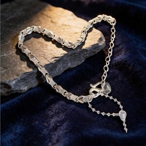 This elegant gold necklace adds a touch of sophistication to any outfit. Perfect for any occasion. Upgrade your wrist game with this rare, high-purity statement piece! This isn't your average sterling silver; this is 999 Fine Silver, meaning it’s 99.9% pure silver. It features a gorgeous, continuous design of delicate heart-shaped links finished with a dainty heart charm.
