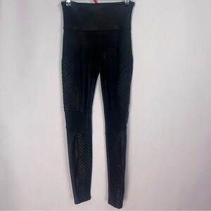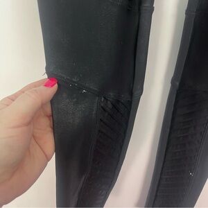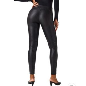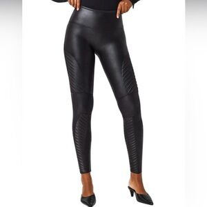 SPANX FAUX LEATHER VERY BLACK MOTO LEGGINGS in Medium