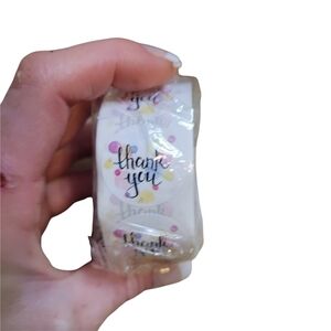 ▪︎WHITE STICKER WITH PURPLE, BLUE, & GREEN POLKA DOTS READING "THANK YOU"