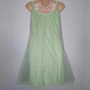 Vintage Mint Green Sheer Babydoll Nightgown Ruffle Lace