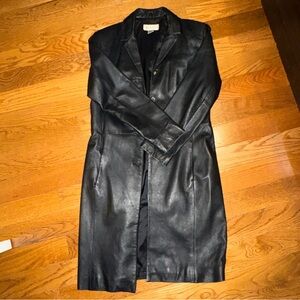 Alfani Vintage Leather Trench Coat Black