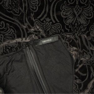 Forever 21 Black Patterned Velvet Sheer Jumpsuit With Flare Bottoms