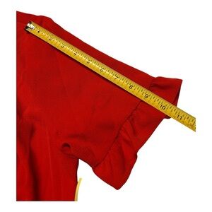 $139 CECE NEW Women’s Red Ruffled-Sleeve Cascading Belted Fit & Flare Dress 14