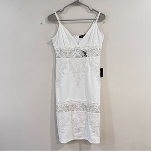 NWT Lulus Can't Deny It White Lace Sleeveless Bodycon Midi Dress MEDIUM