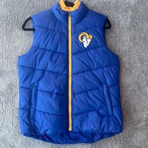 Los Angeles Rams Puffer Vest Women Medium Blue Yellow Zip Up NFL Team Apparel
