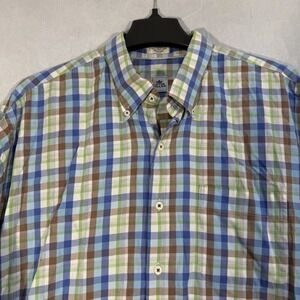 PETER MILLAR Blue Green Long Sleeve Button Down Check Plaid Preppy Shirt 2XL