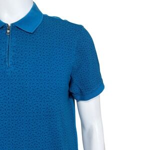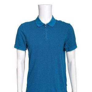 Calvin Klein Men's Blue Geometric Print Quarter Zip Polo Shirt Size Medium