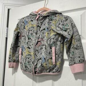Disney Girls Size 5/6 Long Sleeve Full Zip Disney Princess Hooded Sweatshirt EUC