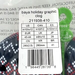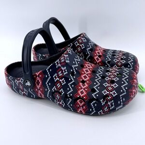 Crocs Baya Holiday Graphic Clog Mens Size 10 Navy Blue Fair Isle Comfy Gift NWT