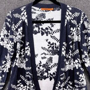 Belldini Womens XL Navy Blue White Floral Fern Open Front Cardigan Sweater