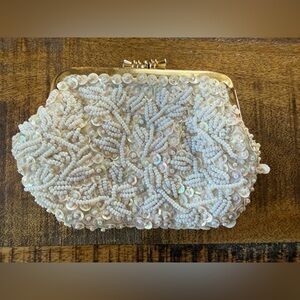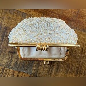 VTG Emson Japan Hand Made Beaded kiss clasp Coin Purse Ivory Romantic Glam