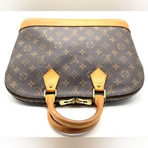 Authentic Chic Louis Vuitton Monogram Alma PM satchel handbag with iconic monogram. Rich brown leather with tan accents. Includes the original dust bag! Light signs of rubbing on corners, very little darkening patina on handles. Has a zipper closure, zipper pocket inside and open pocket inside. Authenticity guaranteed! Will be authenticated for free through Poshmark after purchasing. Thank you so much for stopping by!