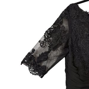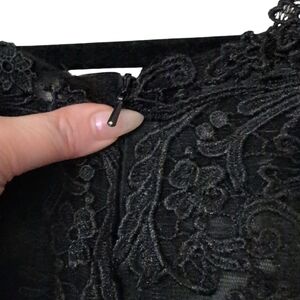 Lace overlay is sheer on sleeves, Shoulder, and back.