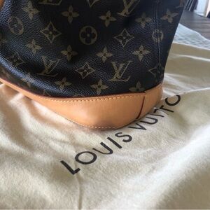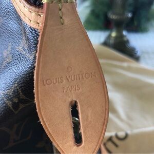 Elegant Louis Vuitton handbag in classic monogram canvas. Features tan leather handles for a sophisticated look. Perfect for any occasion.