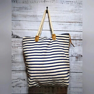 Summer Rose Striped Nautical Beach Tote with Rope Handles XL Size
