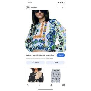 Industry Republic Women's Long Sleeve Crop Top with Blue Floral Print