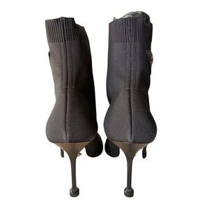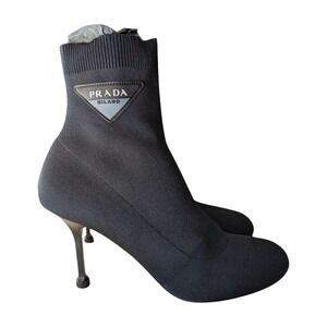 Prada Black Sock Ankle Boots Stiletto Heel Logo Triangle Women's Size 39.5 Italy