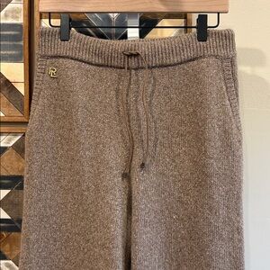Beautiful 100% cashmere jogger pants by Ralph Lauren Collection, size medium. Still in very good condition with one small repair on the front as shown and some minor pilling.