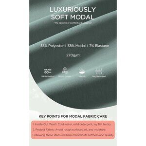 Made of ultra soft modal fabric blend with polyester and spandex, 270g/m² medium weight fabric, weightly draped, moisture absorption and wrinkle-resistant, keep the shape of the tops well.