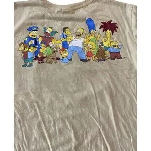 The Simpsons Men T Shirt Embroidered Front Logo back desing Size XL Cream