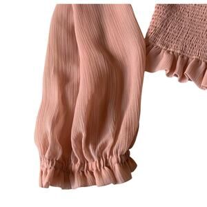 Chelsea & Violet Blush Smocked Textured Top, Feminine Ruffles Sheer Long Sleeves